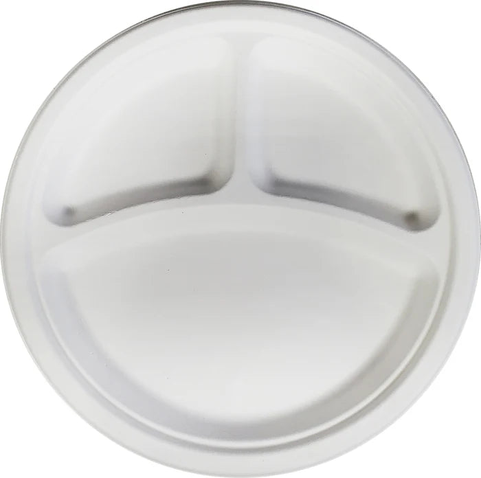 10" 3 COMPARTMENT ROUND ECO-CRAZE PLATES 4 X 125 CT